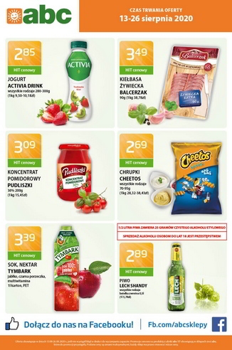 Oferta ważna od czwartku 13.08 do środy 26.08 lub do wyczerpania zapasów.