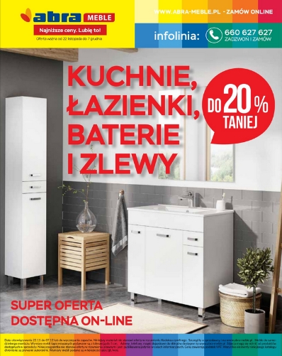 ’Kuchnie, łazienki, baterie i zlewy do 20% taniej’ – nowa gazetka promocyjna sieci sklepów Abra Meble.