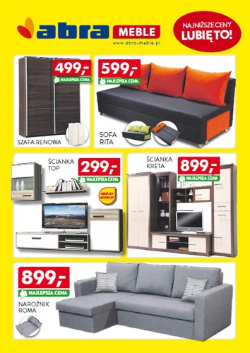 Oferta promocyjna sieci sklepów Abra Meble – „Najlepsza cena”.