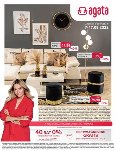 ’40 rat 0% bez dodatkowych kosztów na wszystkie produkty albo dostawa i wniesienie GRATIS przy zakupie za min. 1000 zł’ – nowa gazetka promocyjna sieci salonów Agata.