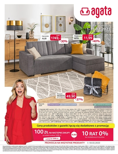 Ceny produktów z gazetki łączą się dodatkowo z promocją: 100 zł na następne zakupy za każde wydane 1000 zł albo 10 rat 0% bez dodatkowych kosztów.