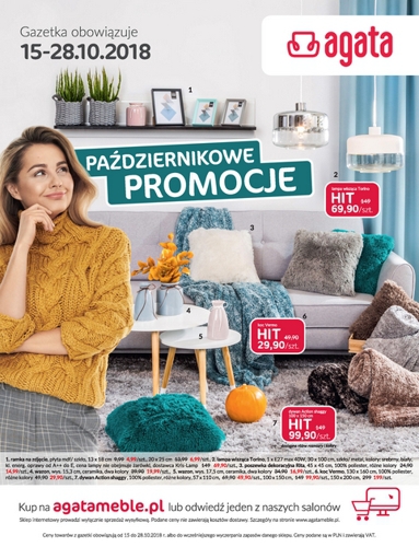 ’Październikowe promocje’ – nowa gazetka promocyjna sieci salonów Agata z artykułami wyposażenia wnętrz.