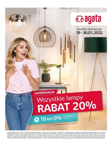’Superokazja. Wszystkie lampy z rabatem 20% + 10 rat 0% bez dodatkowych kosztów’ – nowa gazetka promocyjna sieci salonów Agata.