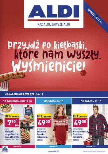 ’Przyjdź po kiełbaski, które wyszły nam wyśmienicie!’ – nowa gazetka promocyjna Aldi.