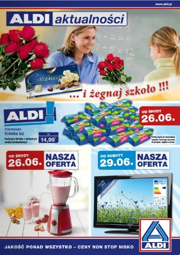 Kolejna gazetka promocyjna Aldi – „… i żegnaj szkoło!!!”.