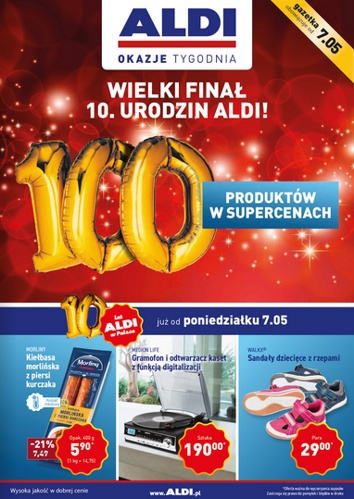 ’Wielki finał 10. urodzin Aldi! 100 produktów w supercenach’ – nowa gazetka promocyjna Aldi.