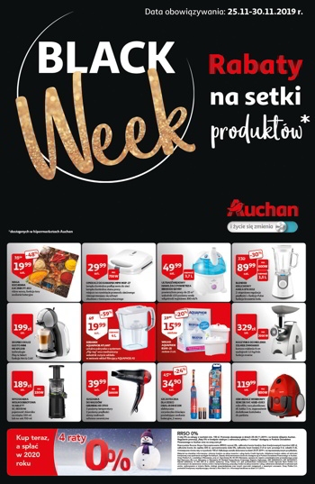 ’Black Week. Rabaty na setki produktów’ – nowa gazetka promocyjna sieci marketów Auchan.