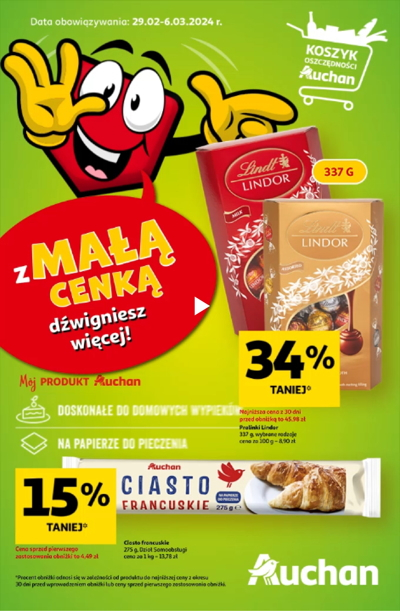 ’Z małą cenką dźwigniesz więcej!’ – nowa gazetka promocyjna sieci supermarketów Auchan.