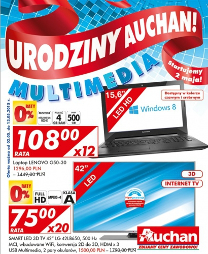 Nowa gazetka promocyjna Auchan – „Urodziny Auchan! Multimedia”.