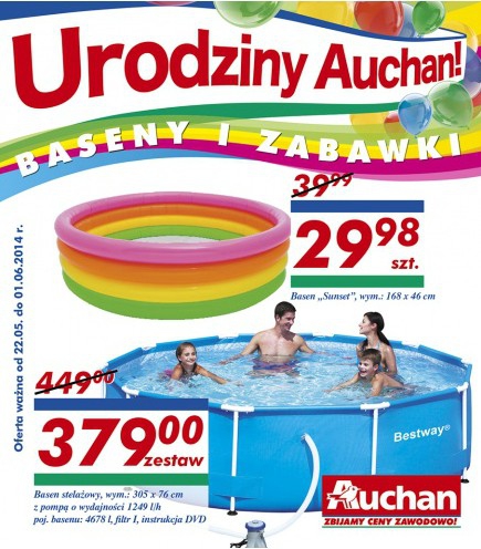 Nowa gazetka promocyjna Auchan – „Urodziny Auchan! Baseny i zabawki”.
