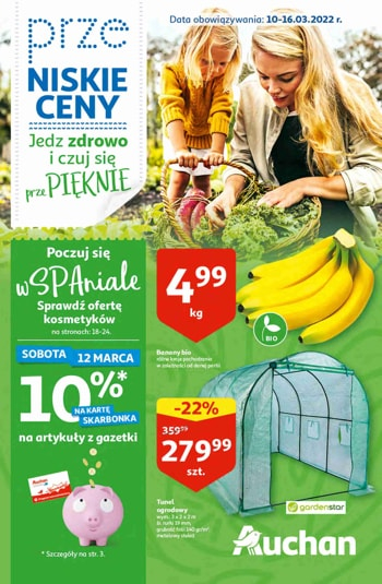 ’Prze niskie ceny. Jedz zdrowo i czuj się przepięknie’ – nowa gazetka promocyjna sieci supermarketów Auchan.