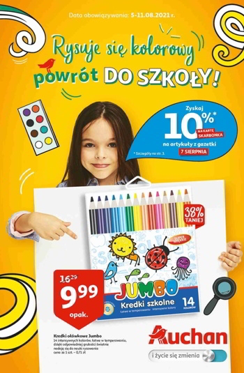 ’Rysuje się kolorowy powrót do szkoły!’ – nowa gazetka promocyjna sieci supermarketów Auchan.