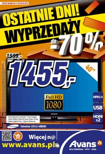 Zapraszamy do przeglądania gazetki promocyjnej sklepu Avans. Oferta dostępna do 30.01.
