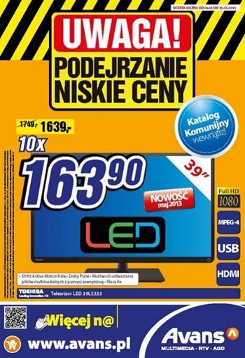 Nowa gazetka promocyjna Avans – „Uwaga! Podejrzanie niskie ceny”.