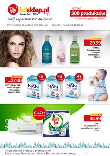Nowa gazetka promocyjna supermarketu internetowego Bdsklep.pl – „Ponad 500 produktów w promocyjnych cenach”.