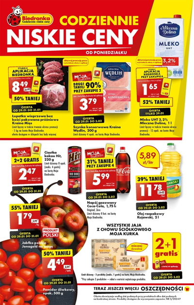 * – cena tylko od poniedziałku 29.01 do środy 31.01 z aplikacją Biedronka. Limit łączny w okresie trwania promocji wynosi 5 kg na konto Moja Biedronka.
