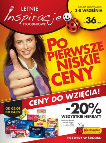 Aktualna gazetka promocyjna sieci handlowej Biedronka – „Letnie inspiracje tygodniowe – Po pierwsze niskie ceny”.