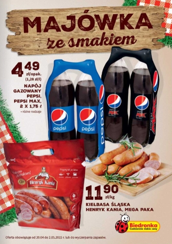 - Pepsi lub Pepsi Max 2×1,75 L – 4,49 zł.
