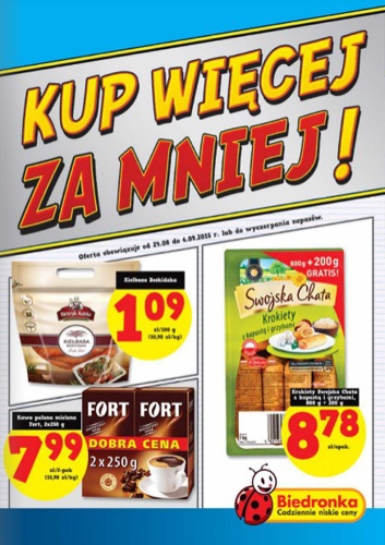Nowa gazetka promocyjna sieci handlowej Biedronka – „Kup więcej za mniej!”.