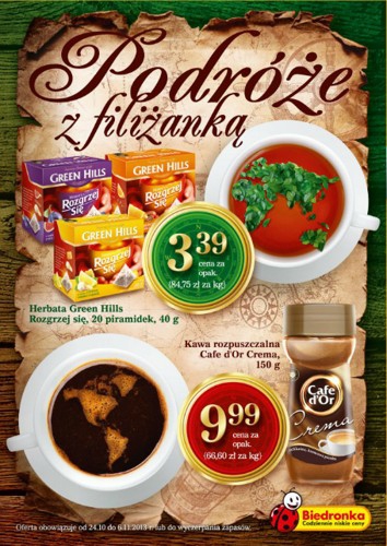Nowa gazetka promocyjna sieci handlowej Biedronka – „Podróże z filiżanką”.