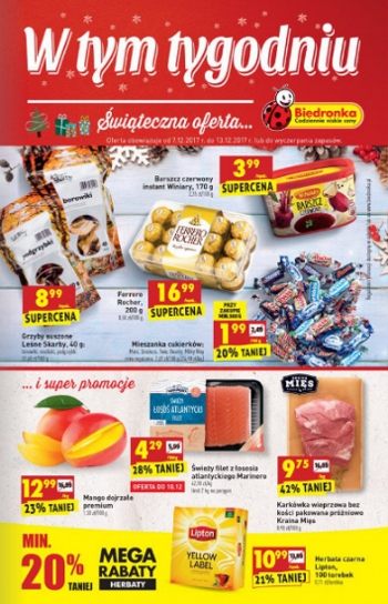 Nowa gazetka promocyjna sieci sklepów Biedronka – „W tym tygodniu świąteczna oferta…”.