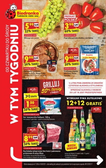 Oferta ważna od czwartku 12.08 do środy 18.08 albo według dat podanych przy produktach lub do wyczerpania zapasów.