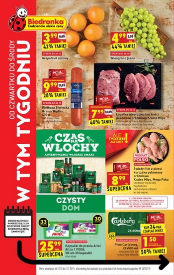 Oferta ważna od czwartku 28.10 do środy 3.11 albo według dat podanych przy produktach lub do wyczerpania zapasów.