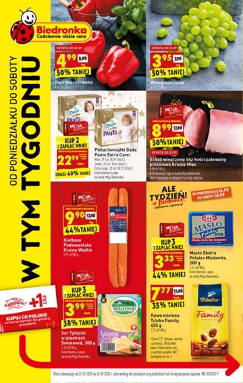 Oferta ważna od poniedziałku 21.09 do soboty 26.09 albo według dat podanych przy produktach lub do wyczerpania zapasów.