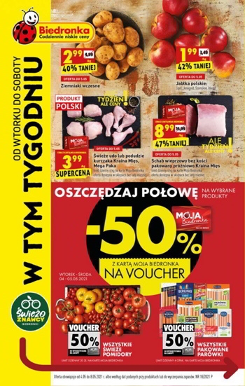 Oferta ważna od wtorku 4.05 do soboty 8.05 albo według dat podanych przy produktach lub do wyczerpania zapasów.