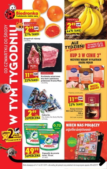 Oferta ważna od czwartku 14.11 do środy 20.11 albo według dat podanych przy produktach lub do wyczerpania zapasów.