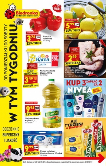 Oferta ważna od poniedziałku 16.09 do soboty 21.09 albo według dat podanych przy produktach lub do wyczerpania zapasów.