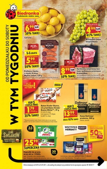 Oferta ważna od poniedziałku 20.09 do soboty 25.09 albo według dat podanych przy produktach lub do wyczerpania zapasów.
