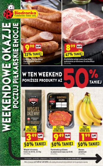 ’Weekendowe okazje. Poczuj piłkarskie emocje’ – nowa gazetka promocyjna sieci sklepów Biedronka.