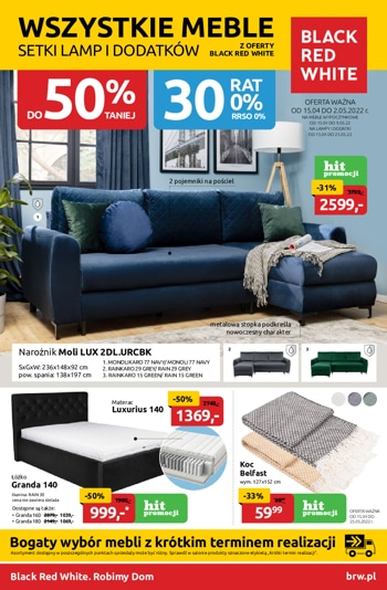 ’Wszystkie meble, lampy i dodatki z oferty BRW do 50% taniej’ – nowa gazetka promocyjna sieci sklepów meblowych Black Red White.