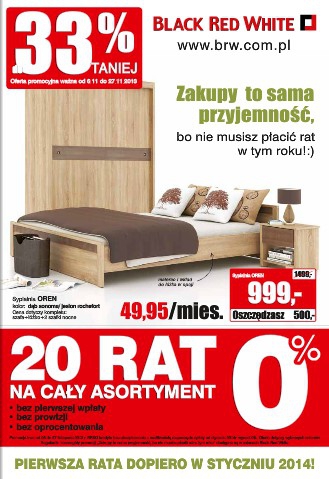 Na cały asortyment 20 rat 0% bez pierwszej wpłaty, bez prowizji i bez oprocentowania, a pierwsza rata dopiero w styczniu 2014 roku.