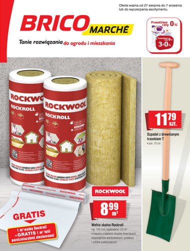 - Wełna szklana Rockwool m² – 8,99 zł.