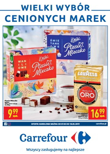 ’Wielki wybór cenionych marek’ – nowa gazetka promocyjna sieci marketów Carrefour.