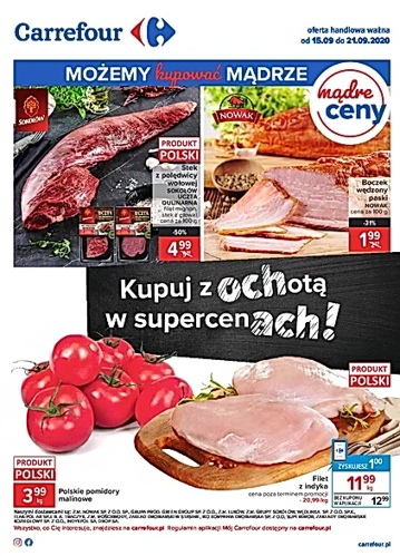 ’Kupuj z ochotą w supercenach!’ – nowa gazetka promocyjna sieci marketów Carrefour.