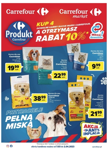 Kup 4 dowolne karmy suche marki Carrefour, a otrzymasz rabat 10%. Miksuj dowolnie.