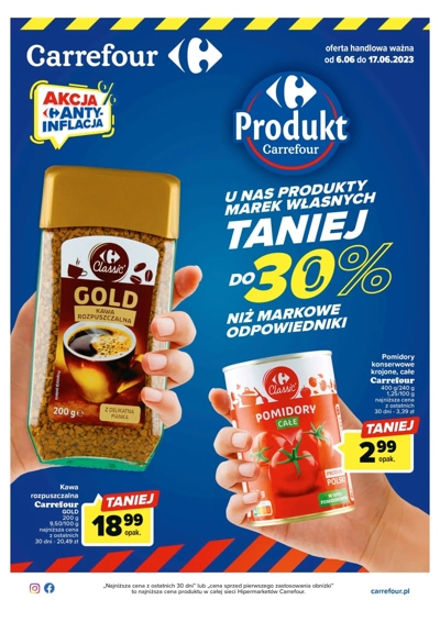 Wskazywane w gazetce promocyjnej Carrefour najniższe ceny, które obowiązywały w okresie 30 dni przed wprowadzeniem obniżki lub ceny sprzed pierwszego zastosowania obniżki odnoszą się do najniższej ceny w całej sieci hipermarketów Carrefour. W każdym sklepie znajdziemy dla danego przecenionego produktu informację o najniższej cenie, która obowiązywała w danym sklepie w okresie 30 dni przed wprowadzeniem obniżki lub o cenie obowiązującej sprzed pierwszego zastosowania obniżki w przypadku produktów ulegających szybkiemu zepsuciu lub mających krótki termin przydatności.