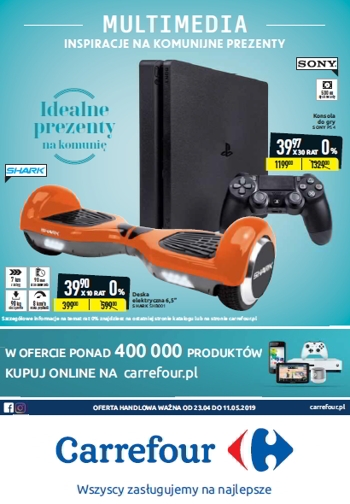 ’Multimedia – inspiracje na komunijne prezenty’ – nowa gazetka promocyjna sieci marketów Carrefour.