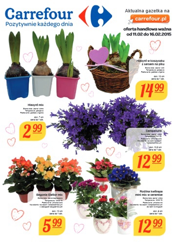 Nowa gazetka promocyjna sieci handlowej Carrefour – „Kwiaty na Walentynki”.