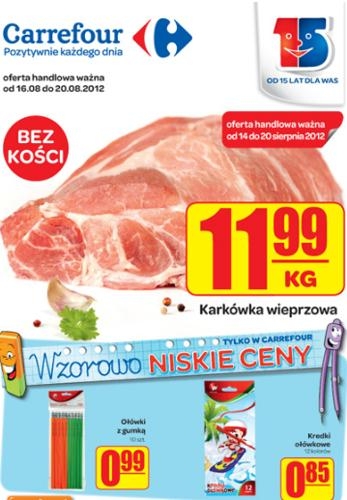 Wtym tygodniu w markecie Carrefour czeka na Ciebie karkówka wieprzowa za jedyne 11,99 zł za kilogram . Oferta ważna od 16.08 do 20.08.