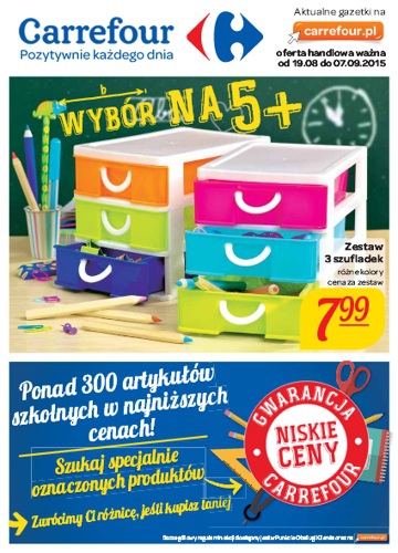 Nowa gazetka promocyjna sieci handlowej Carrefour – „Wybór na 5+”.