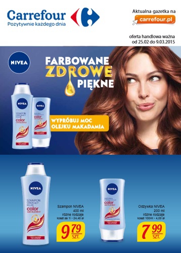 Nowa gazetka promocyjna sieci handlowej Carrefour – „Pielęgnacja z Nivea”.