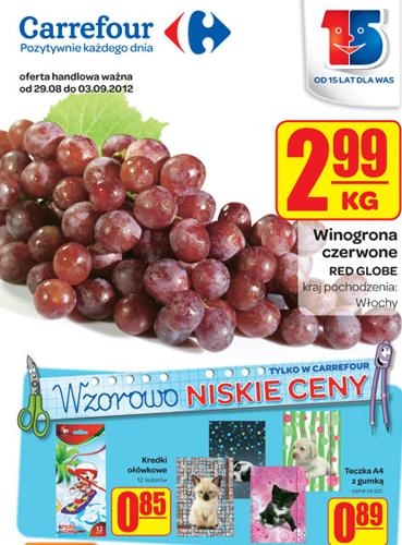 Wtym tygodniu w markecie Carrefour winogrona czerwone za jedyne 2,99 zł za kilogram . Oferta ważna od 29.08 do 03.09.