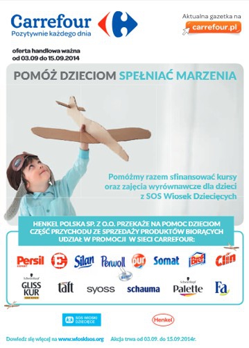 HENKEL POLSKA SP. Z O.O. PRZEKAŻE NA POMOC DZIECIOM CZĘŚĆ PRZYCHODU ZE SPRZEDAŻY PRODUKTÓW BIORĄCYCH UDZIAŁ W PROMOCJI W SIECI CARREFOUR.