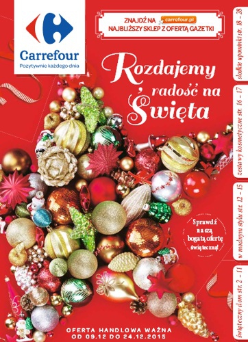 Nowa gazetka promocyjna sieci handlowej Carrefour – „Rozdajemy radość na Święta”.