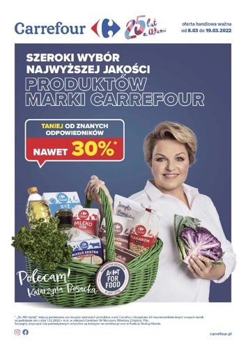 ’Szeroki wybór najwyższej jakości produktów marki Carrefour taniej od znanych odpowiedników nawet 30%’ – nowa gazetka promocyjna sieci marketów Carrefour.