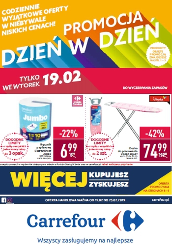 ’Promocja dzień w dzień. Codziennie wyjątkowe oferty w niebywale niskich cenach!’ – nowa gazetka promocyjna sieci marketów Carrefour.